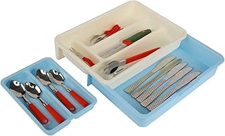 Uberlyfe Expandable Cutlery Tray Drawer Tray, Perfect Organizer for Kitchen and Drawer Item (Blue) (KT-001720-BOX-BL)