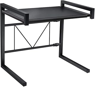 レンジ台 電子レンジ上ラック 43-65CM幅伸縮式対応 2段式 キッチン収納棚 荷重30KG ステンレス製 ピュアブラック (レンジ台)