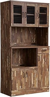 家具350 レンジ台 食器棚 キッチン収納 幅90cm 高さ180cm 大型レンジ対応 ダークブラウン 128004