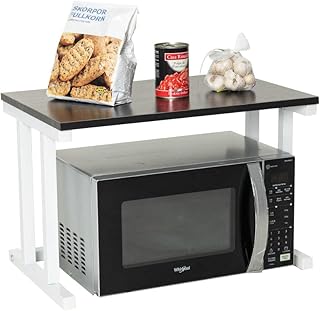 木製の台 レンジ上収納ラック レンジボード 天板付き 2段式 レンジ台 キチン収納棚 キッチン スチールラック(ダークブラウン)