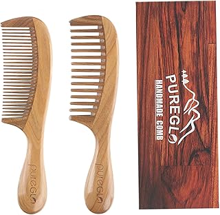 Handmade Wooden Comb Set [Gift Box] - pureGLO Natural Green Sandalwood Anti-Static Fine & Wide Tooth Hair Combs for Men Women and Kids