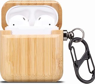 JUBECO Handmade Natural Wooden Protective Case for Airpods 1 & 2 (Bamboo)