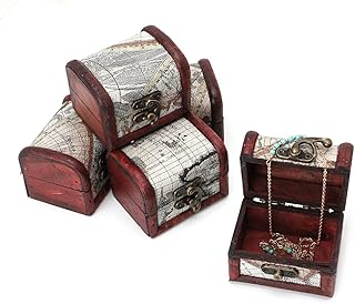 Amrka Wooden Pirate Map Jewellery Storage Box Case Holder Vintage Treasure Chest