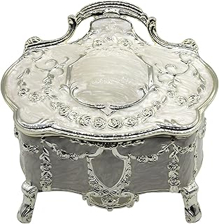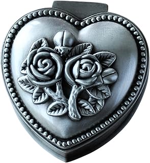 Classic Vintage Antique Heart Shape Jewellery Box Ring Small Trinket Storage Organiser Chest Christmas Gift, Silver