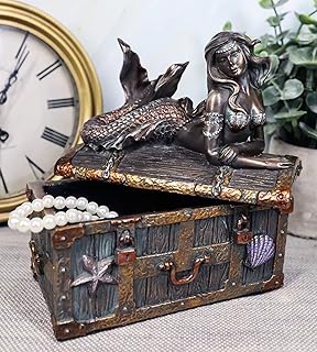 Ebros Gift Bronzed Mermaid Nerida Resting On Sunken Treasure Jewellery Box Figurine 13cm L Decorative Trinket Keepsake