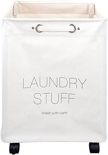 キャスター付きランドリーバスケット [ナチュラル] ホワイト系 ランドリーボックス 収納 ワゴン 脱衣かご 洗濯かご 洗濯物入れ おしゃれ 四角 大口 西海岸 北欧 [並行輸入品]