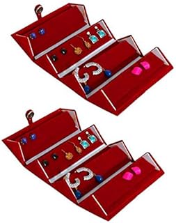 ATORAKUSHON 多目的 12ペア イヤリングオーガナイザー ジュエリーボックス ジュエリーポーチ 2個パック マルーン