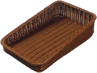 収納バスケット パンかご 洗えるバスケット 野菜バスケット ONO かご籐 雑貨店 PPラタン 角型 浅型 洗える 卓上収納 お菓子 果物 パン (茶色, 幅35×奥行25×高さ7)