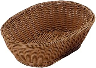 収納バスケット パンかご 洗えるバスケット 野菜バスケット ONO かご籐 雑貨店 PPラタン 角型 浅型 洗える 卓上収納 お菓子 果物 パン 楕円形 (幅30×奥行20×高さ7㎝, コーヒー)