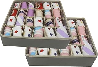 Nowyeh 靴下 引き出し オーガナイザー ディバイダー 2パック 24セル 折りたたみ可能 靴下 オーガナイザー クローゼット キャビネット オーガナイザー 下着 ストレージボックス 靴下 ランジェリー 下着 (グレー) (B)