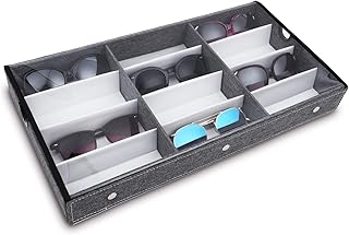 Ikee Design アイウェア オーガナイザー ボックス 12スロット 小または中 眼鏡ボックス ディスプレイケース 蓋付き 眼鏡 時計 ジュエリー グレー リネン 幅19インチ x 奥行9 3/4インチ US サイズ: 12 3/4"W x 14 3/4"D x 2 1/4"H カラー: グレー