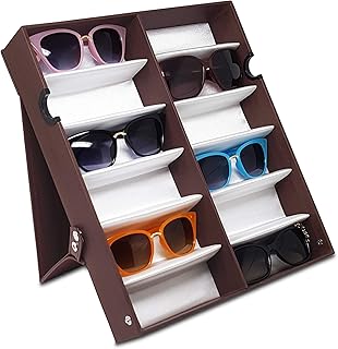 Ikee Design 眼鏡収納オーガナイザーボックス – 12スロット サングラスボックス ディスプレイトレイケーススタンド ダークウッドパターンカバー 眼鏡、腕時計、ジュエリー用 ブラウン 12 3/4インチ x 14 1/2インチ x 2 1/2インチ