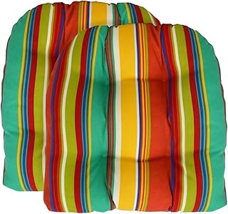 RSH Décor ~ 2セット 屋内 屋外 ウィッカー タフテッドスタイル U字型チェアクッション 明るいカラフルなストライプコーラル ターコイズ グリーン ブルー イエロー 19インチ x 19インチ U字型シートクッション