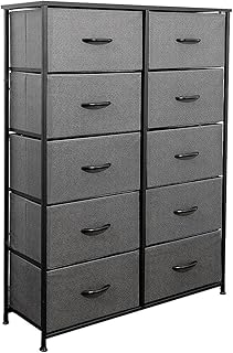 XBelmber 5段 トール引き出し ドレッサー 大容量 衣類 引き出し ストレージ オーガナイザー ユニット ドレッサー 寝室 保育園 廊下 玄関 クローゼット用 チェスト用 10個の簡単プルファブリックビンと丈夫なメタルフレーム 木製トップ ダークグレー