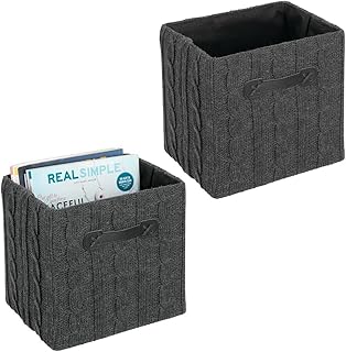 mDesign ソフトニット 積み重ね可能 ホームストレージオーガナイザーボックス ハンドル付き クローゼット 寝室 玄関 クローゼット カビーオーガナイザー 雑誌 本 小物収納 2パック チャコールグレー