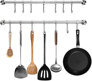 WILLOR 15.6インチポットフライパンラック 2パック 壁掛けキッチンハンギングポット フライパンラック 鍋 フライパン ハンギングオーガナイザー 台所用品 ステンレススチール 吊り下げレール 12個のスライド式Jフック付き