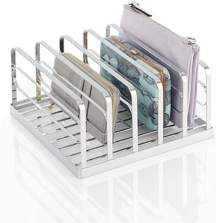 mDesign メタル分割 積み重ね可能 ハンドバッグオーガナイザー クローゼット 寝室 ドレッサー 棚用 クローゼットシェルフストレージソリューション 財布 アクセサリー 5セクション クロム