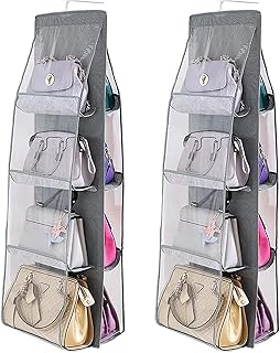 DSTong ハンドバッグオーガナイザー 6ポケット 不織布 クリアハンドバッグ ストレージバッグ ポーチ クリアパース ハンギングオーガナイザー クローゼット(2パック/グレー)