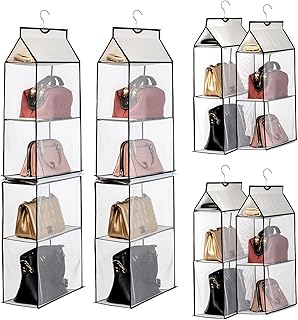 ハンギングパース ハンドバッグオーガナイザー クローゼット用 メッシュシェルフ4個付き ハンドバッグ クローゼット パース ストレージバッグ ホワイト 2個パック