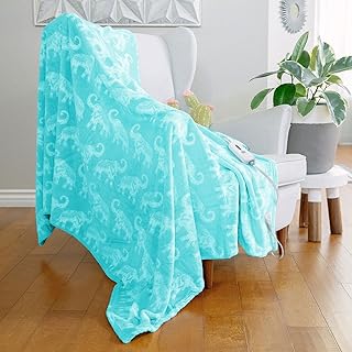 AVAFORT ベルベットプラッシュホームフリーススローブランケット ソファベッド用 暖かでエレガントなファジーブランケット 子供/赤ちゃん/大人/ペット用 軽量マイクロファイバーブランケット (ブルーエレファントW 電気加熱、50インチ x 60インチ)