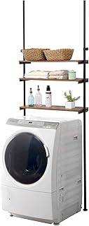萩原 ランドリー収納 洗濯機ラック ランドリー 突っ張り 【高さ無段階調節】 木目調 幅90 ブラウン KTR-3154BR