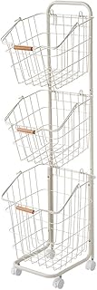 ワイヤーバスケット 3段 角形 洗濯かご キャスター付き ランドリーラック ランドリーボックス ランドリーバスケット バスケット (ホワイト)