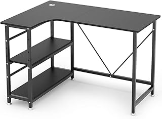 Kingdely l字デスク パソコンデスク ゲーミングデスク 収納ラック付き 幅120x奥行60cm アジャスター付き 省スペース 在宅勤務 ワークデスク 机 pcデスク 勉強机 コーナーデスク おしゃれ ウォールナット