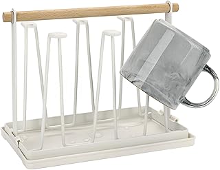 JuxYes テーブルトップカップ乾燥ラックスタンド 取り外し可能なトレイ付き ドリンクグラスとボトル水切りスタンド ハンドル付き ノンスリップマグカップオーガナイザー 乾燥ラック ホームキッチンカウンタートップ/キャビネット/パントリー用