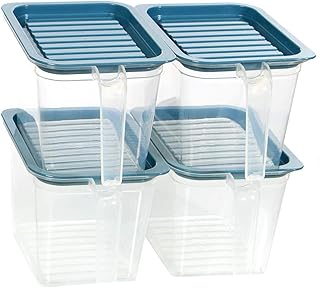 食品保存容器容器 ハンドル蓋付き 1クォート 4個積み重ね可能 BPAフリー キッチン冷蔵庫用パントリー容器 シリアル小麦粉砂糖保存 (ブルー)
