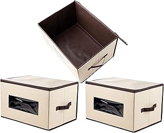 Juvale 折りたたみ式ファブリックストレージコンテナ容器 – 3パック整理キューブボックス、クリアウィンドウと蓋 家庭用品、衣類、オフィス用品用 ベージュ XZGHP