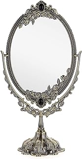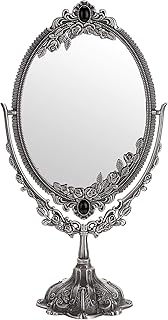 JuxYes メタル卓上アンティーク装飾メイクアップミラー スタンド付き ヴィンテージ回転両面コスメティックミラー フレーム付き レトロデスクトップオーバルドレッシングミラー バスルームベッドルーム用