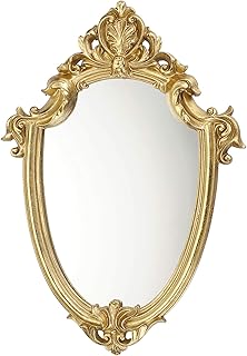 Juxyes アンティーク装飾壁ミラー メイクアップミラー ビンテージシールド形状コスメティックミラー フレーム付き エレガント ヨーロピアン壁掛けドレッシングミラー バスルームベッドルーム用