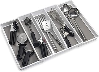 Eltow拡張可能な台所用トレイ 引き出しオーガナイザー 5コンパートメント キッチン用具ホルダー 大きなプラスチック引き出し用具オーガナイザー 多目的調節可能なオーガナイザートレイ キッチン&オフィス用品用