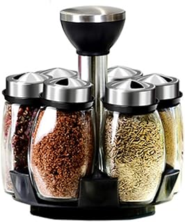 Kemore 回転スパイスラックキッチン スパイスラックキッチンラック 調味料ラック 7ジャー スパイスラック 瓶付き カウンタートップスパイスタワー 収納ラック