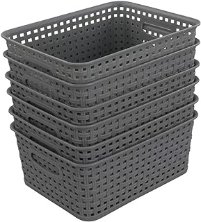 Sandmovie グレー プラスチック ラタン 収納バスケット 6パック