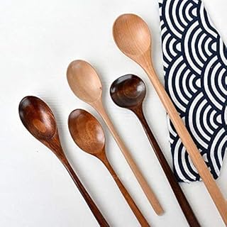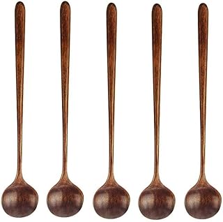 HOMDO 韓国スプーン ロングハンドル 5本入 天然木製 調理スプーン 高耐熱性 調理器具 味噌スープミキシングスプーン調味料スプーン 木製スプーン