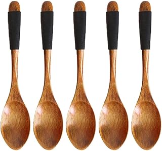 HOMDO 5本セット 和風無垢材小スプーン 子供用食器スプーン コーヒーデザート 木のスプーン 木の調理スプーン ソーススープミキシングスプーン 調味料スプーン 木のスプーン (14cm) (スタイル-A)