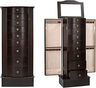 ラージジュエリー アルモア スタンディング ジュエリー キャビネット 木製ジュエリーボックス キャンバー フロントリング ネックレス ストレージ オーガナイザー トップフリップメイクアップミラー付き レトロ ジュエリーチェスト 女性用 (フロアファッション)