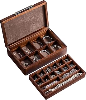 Shanik 木製ジュエリーボックス – 取り外し可能な仕切り付きジュエリーホルダー – ネックレス、イヤリング、リング、ブレスレット用のジュエリーオーガナイザーケース – 男性にも女性にも最適なギフト (木製ボックス/ジュエリー)