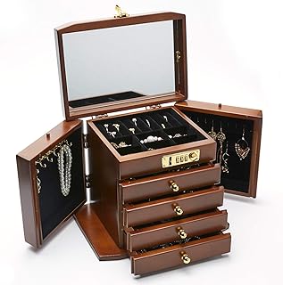 Changsuo 木製ジュエリーボックス レディース ソリッドウッドオーガナイザーボックス コンボロック付き ジュエリー、時計、ネックレス、リング、収納ボックス