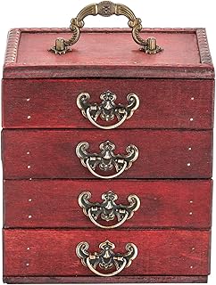 Primo Supply 伝統的な木製ジュエリーボックス オリエンタルスタイルの木製ボックス ジュエリー&アクセサリー用 小さなヴィンテージ宝箱 引き出し付き 素朴な装飾容器 アンティーク収納ボックス