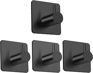 フック 粘着 フック 服と帽子フックタオルフック ステンレス製 粘着力が強すぎる タオルフック 防水 防油 クローゼット コートフック 浴室 キチン 寝間 耐荷重10KG (4個セット) --黒