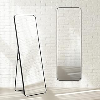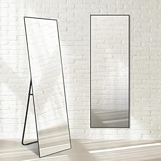 花丸優品 姿見鏡 全身鏡 スタンドミラー 大型 全身ミラー 壁掛け鏡 アルミ合金フレーム おしゃれ スタイリッシュ 60*165cm飛散防止 (ブラック)