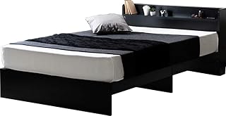 ベッドフレーム クイーンベッド ブラック 黒 おしゃれ 北欧 シンプル スタイリッシュ 木製 コンセント付 ヘッドボード付 宮付 幅木よけ メラミン化粧板 床下すっきり (ブラック クイーン, フレームのみ)