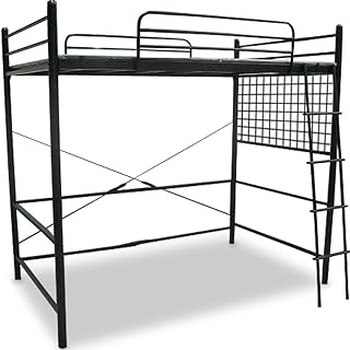 宮付きのロフトベッド 2口コンセント 高さ調節可能 ミドル ハイ シングル パイプ おしゃれ スタイリッシュ 新生活 子供 大人 学生 (ブラック)