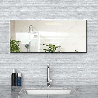 姿見鏡 全身ミラー 全身鏡 立掛け 壁掛け鏡 ドアミラー上アルミ合金フレーム おしゃれ スタイリッシュ (ブラック, 80*34CM)