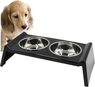 PET LALA (ペットララ) 犬 猫用 食器 スタンド 食事台 ステンレス製 えさ皿 餌 水 容器 食器台 セット おしゃれ スタイリッシュ 食べやすい 設計 (ブラック)