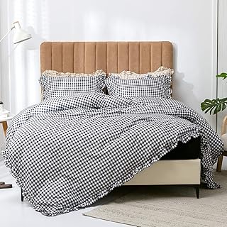 Ovege 掛け布団カバー シングル 布団カバー かわいい フリル付き チェック おしゃれ ベッド用 布団用 ベット 寝具カバー 姫系 ピーチスキン加工 北欧 安心 清潔 丸洗いOK 抗菌防臭 洗い替え速乾 (ブラック, シングル-150*210cm)